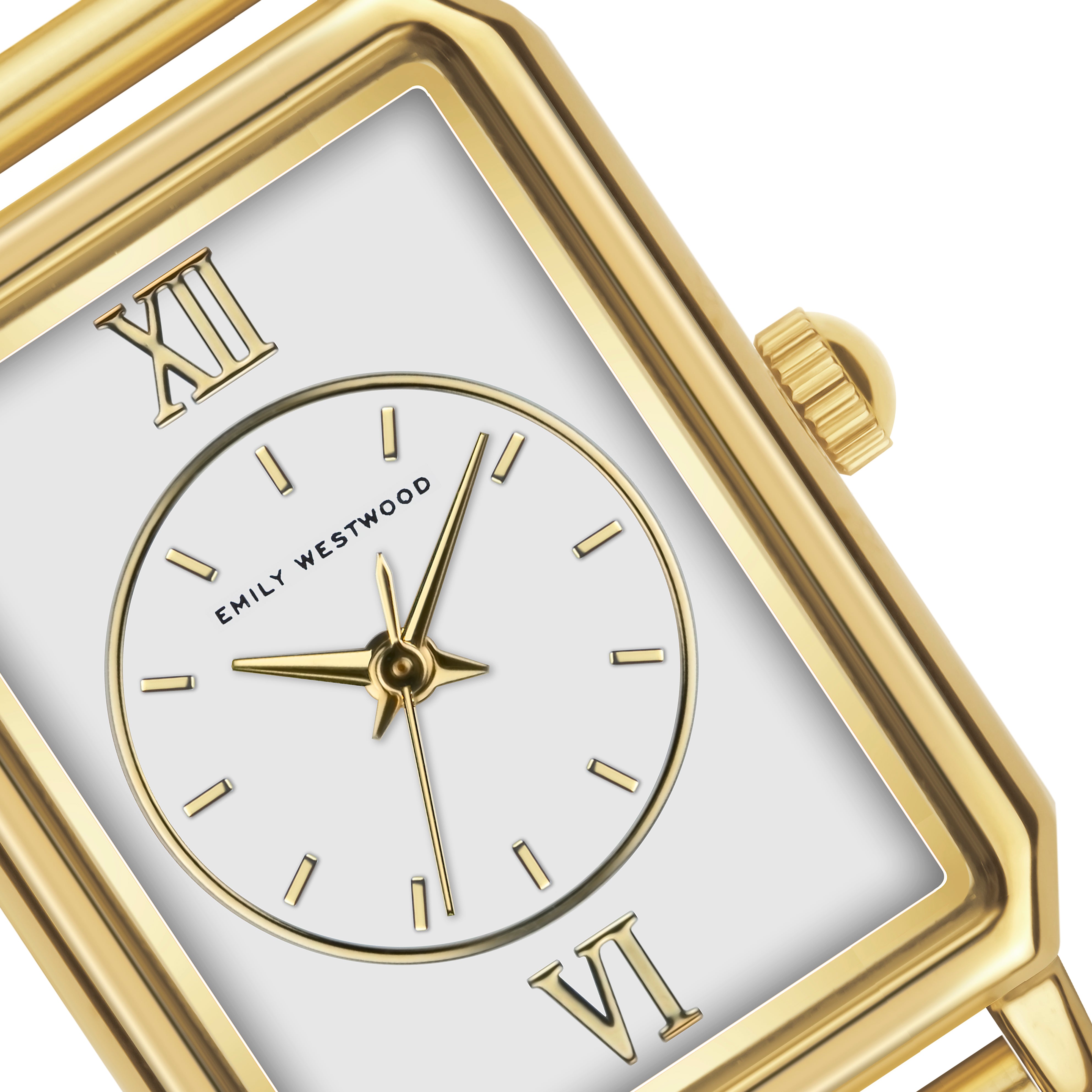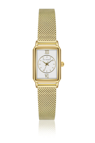 Analog armbandsklocka med Ronda-urverk, reptåligt safirbelagt glas och silverfärgat skjutspänne i rostfritt stål med IP-plätering.