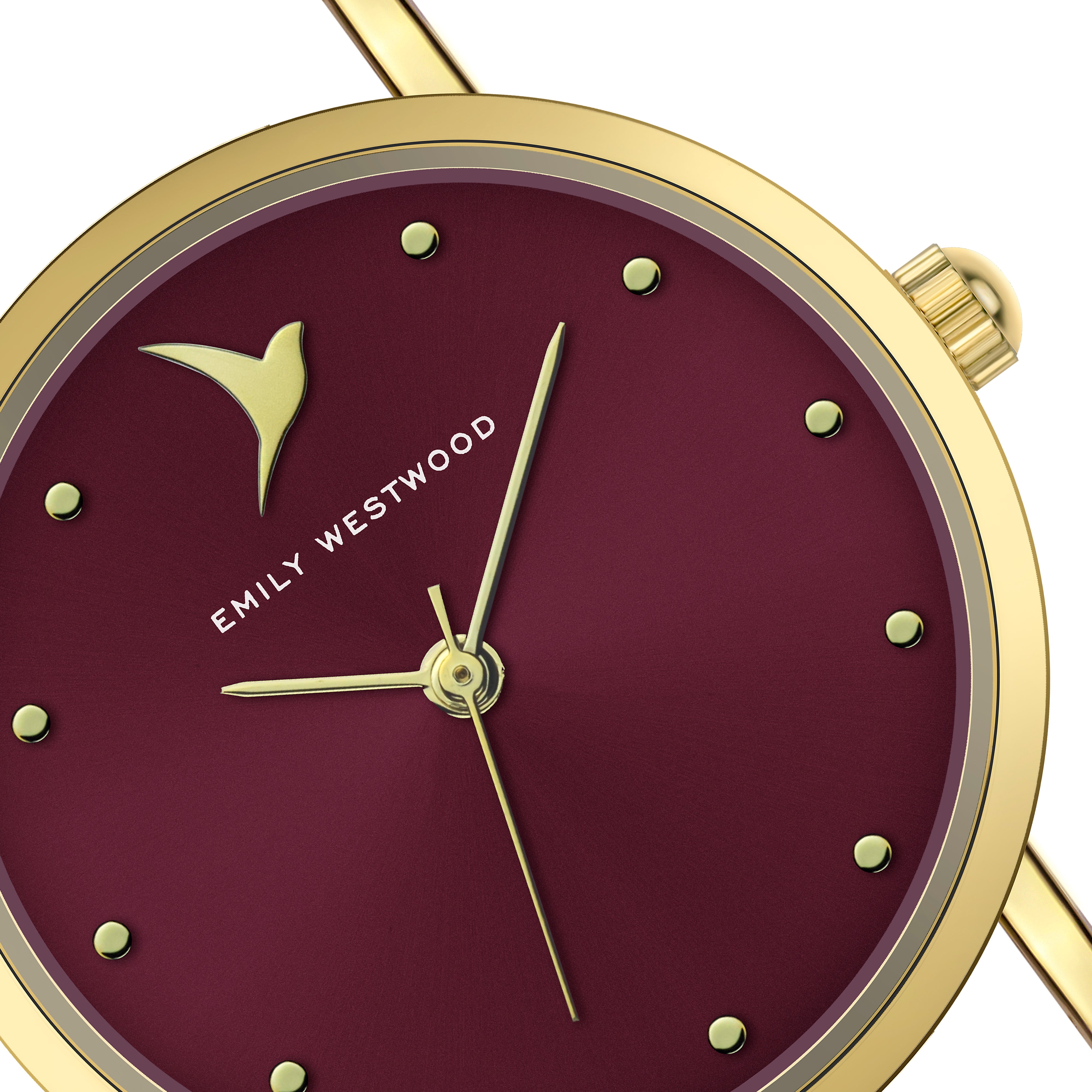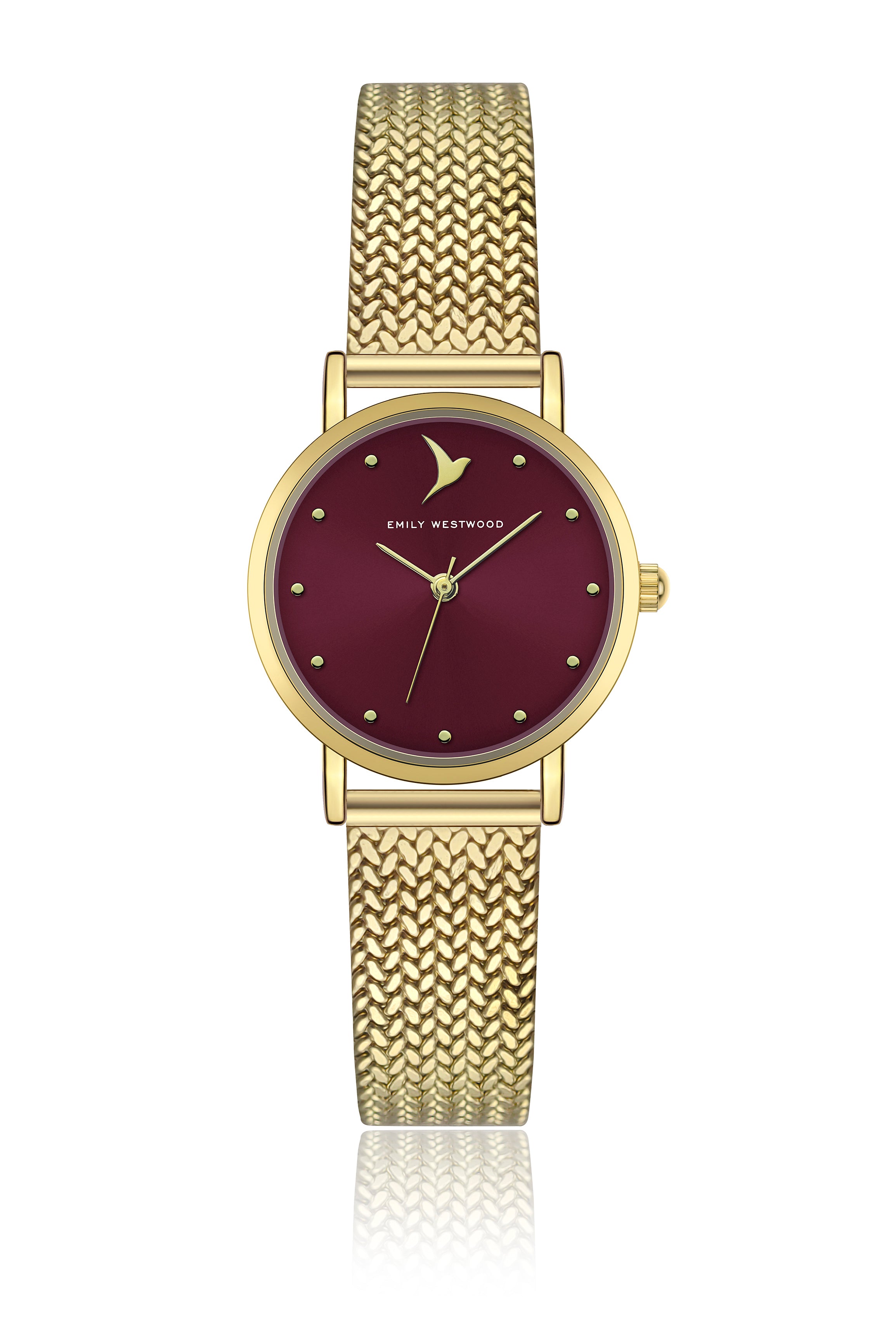 Analog armbandsklocka med japanskt kvartsurverk, reptåligt safirbelagt glas och roséguldpläterat skjutspänne i rostfritt stål med IP-plätering.