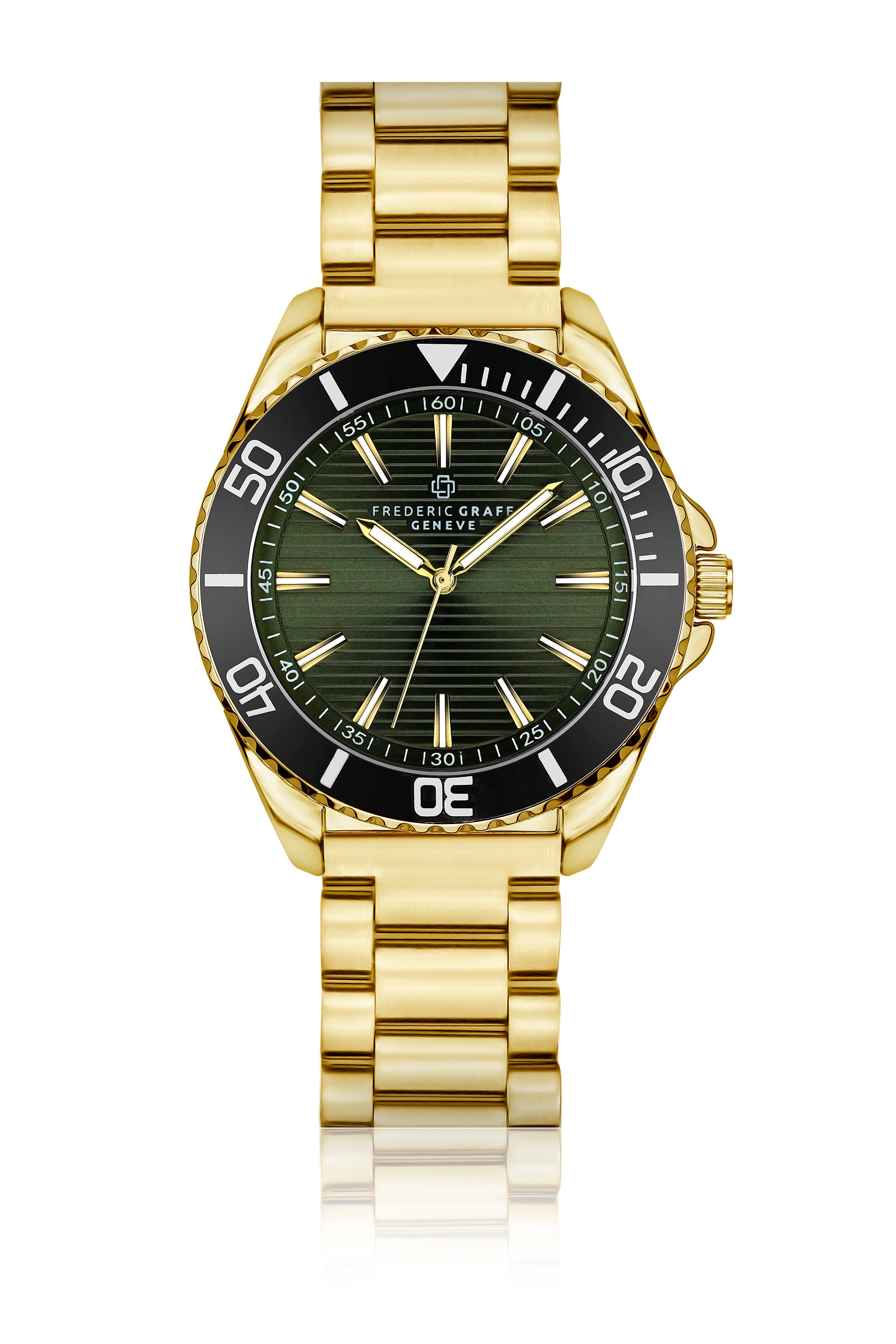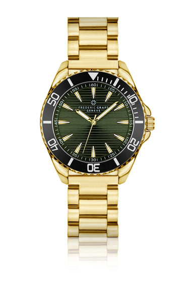 Analog armbandsklocka med japanskt kvartsurverk, härdat mineralglas och guldpläterat viklås i rostfritt stål med IP-plätering.