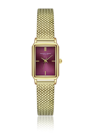 Analog armbandsklocka med japanskt kvartsurverk, härdat mineralglas, guldpläterat armband i rostfritt stål med klassiskt spänne och IP-plätering.