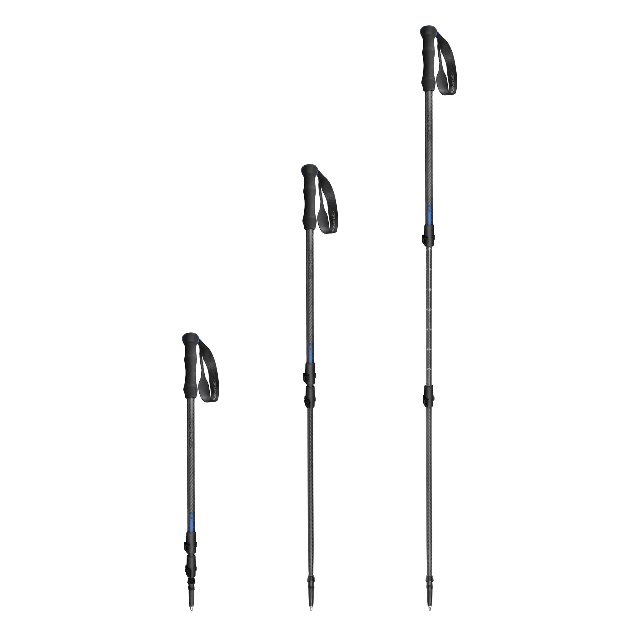 Ultralätta trekkingstavar tillverkade av kolfiber. Den tredelade konstruktionen har justerbar längd från 105 till 135 cm och blir mycket kompakt när den är hopfälld. Handtag i EVA-skum ger hög komfort under användning. FastFit-systemet möjliggör snabb och enkel justering av handledsremmen. Stavarna är utrustade med karbidspetsar för lång hållbarhet och slitstyrka. Setet inkluderar gummispetsar samt utbytbara tallrikar för både sommar- och vintersäsong.